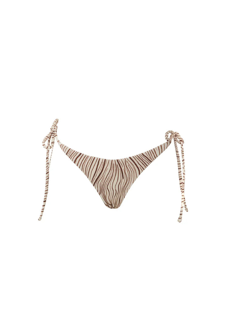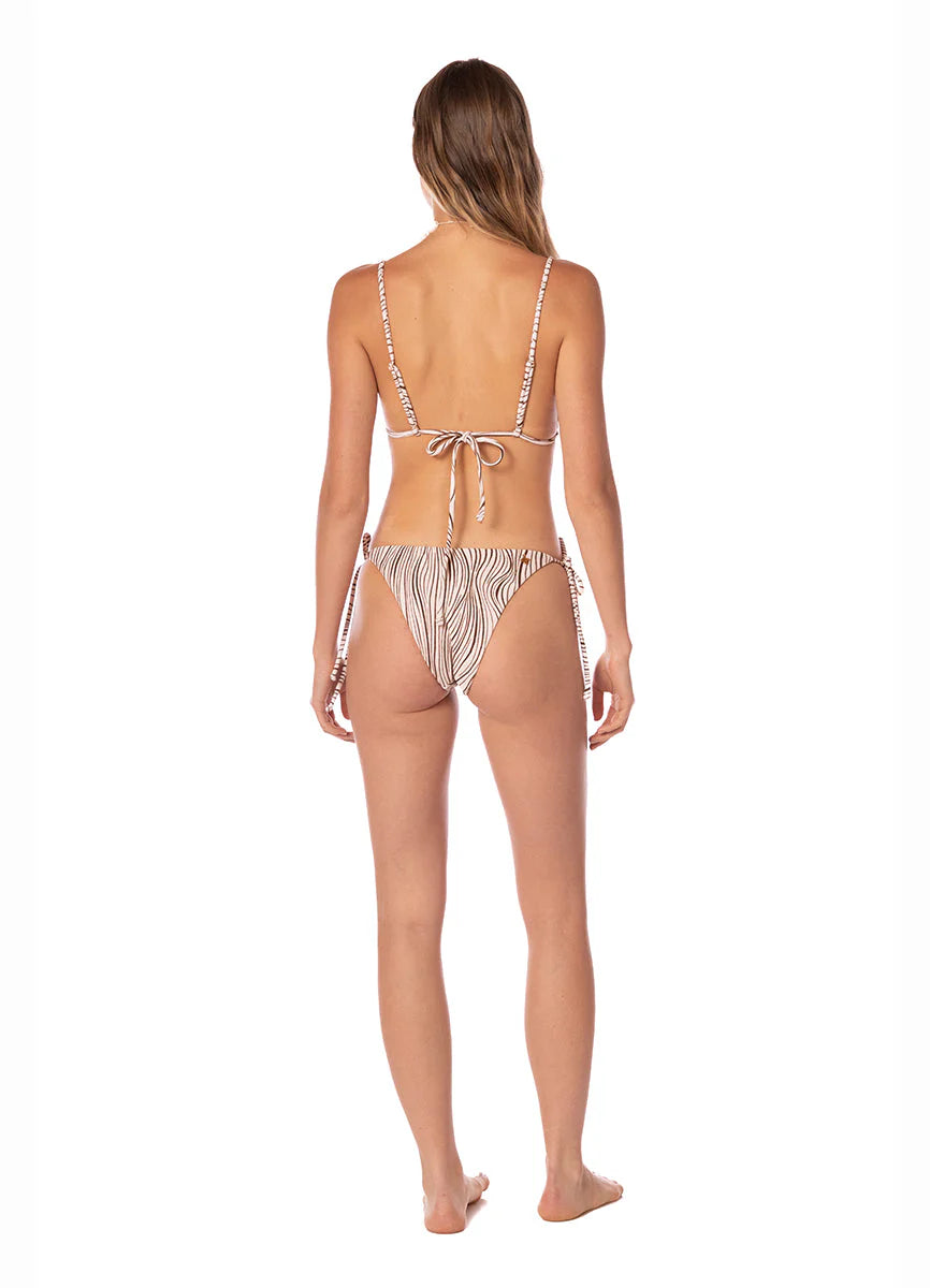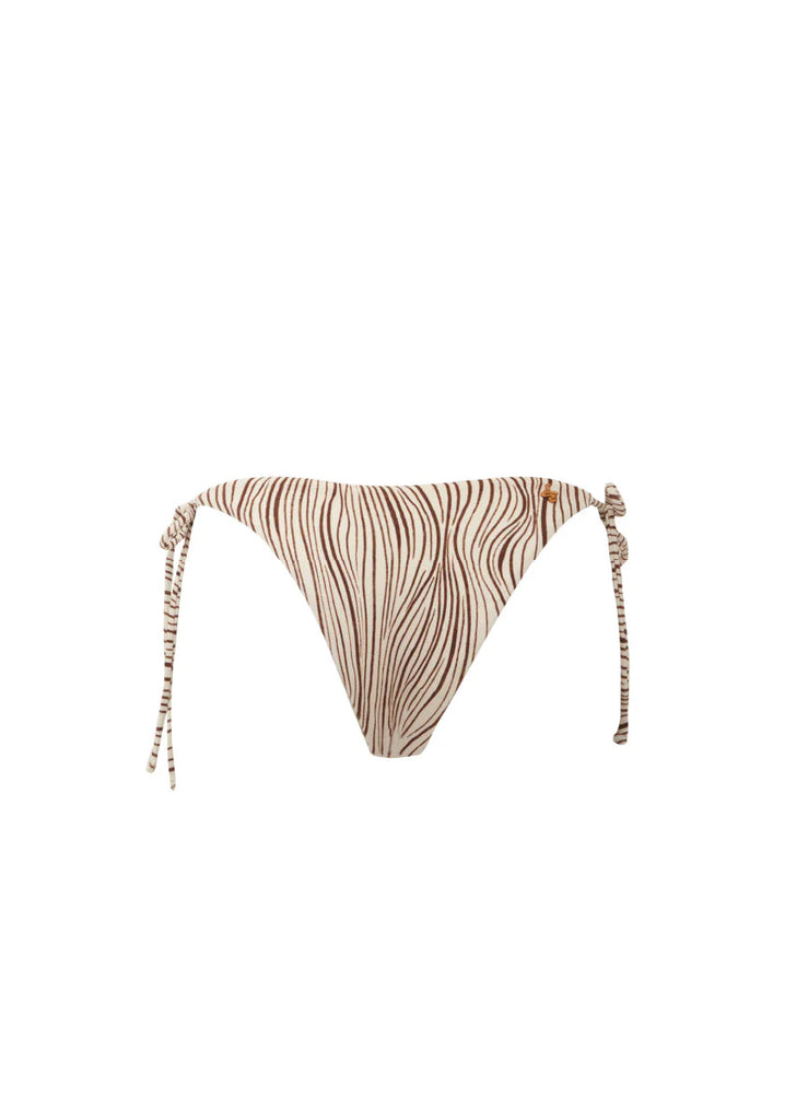 El Candy Eternal Sands ofrece un ajuste favorecedor de cobertura moderada con un diseño clásico de amarre lateral. Confeccionado en un suave tejido texturizado, este panty cuenta con tiras ajustables para un calce personalizado y una silueta minimalista. Su caída delicada y estampado dibujado a mano lo convierten en un esencial de bikini con carácter.