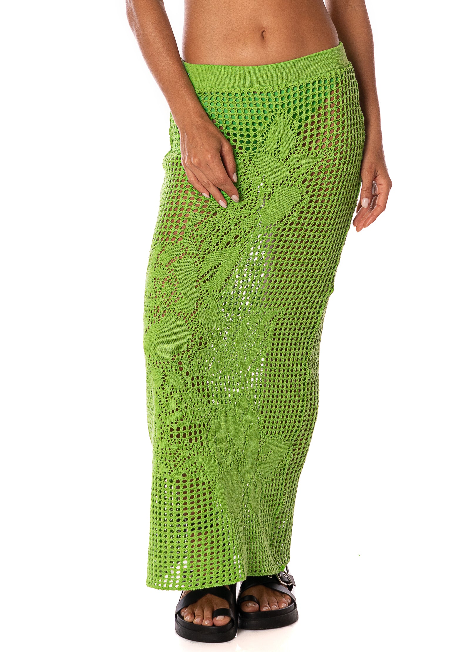 Una falda midi completamente tejida a crochet con encaje de palmeras: esto es lo que obtienes cuando los artesanos de Maaji dan vida a sus diseños. Tan brillante como un rayo de sol, la falda midi Tano es una verdadera obra de arte.