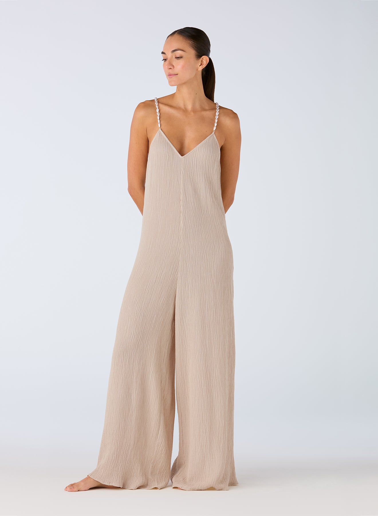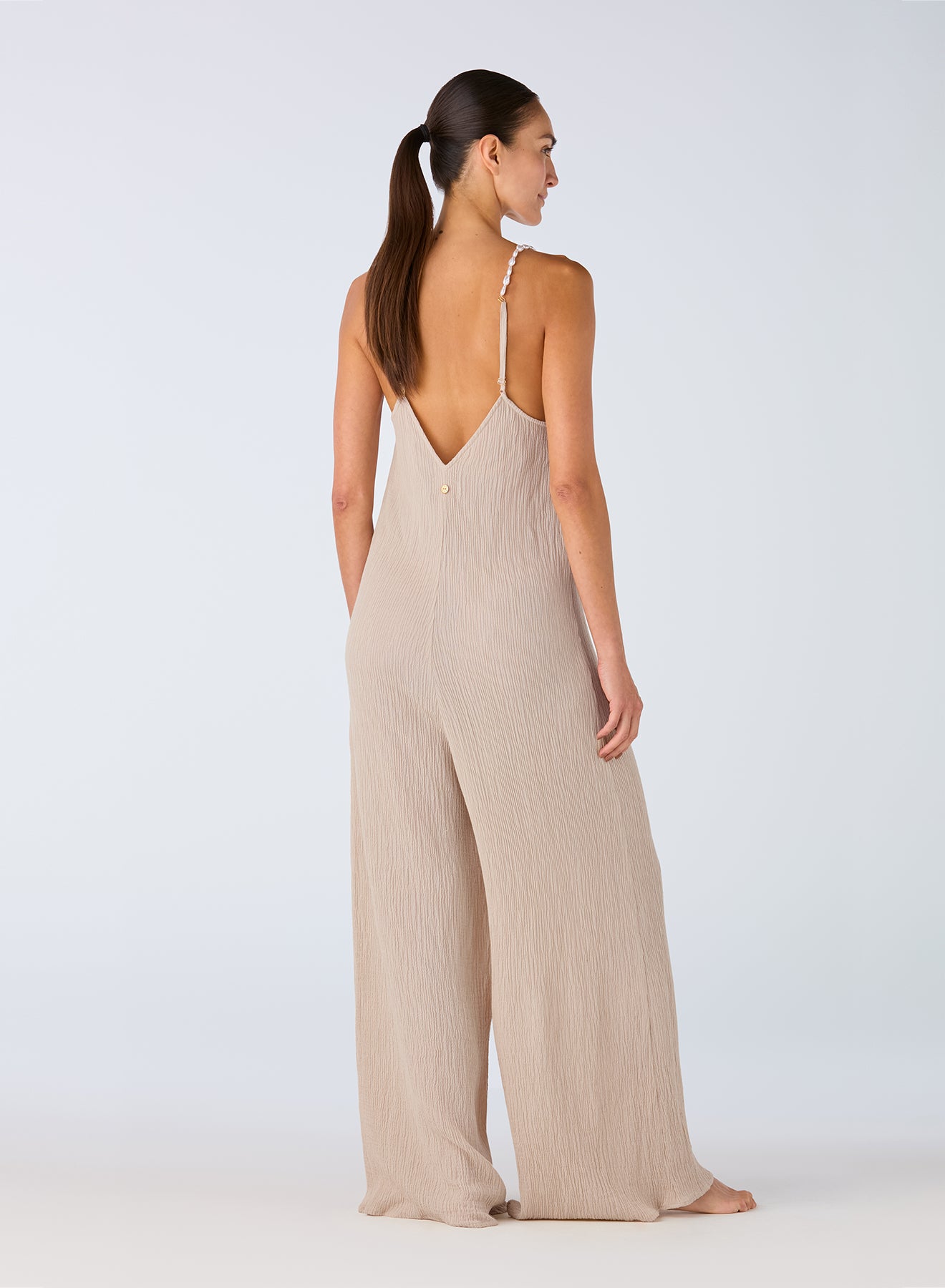 El Kimono Bali Mimosa presenta una silueta amplia con escote profundo en V y espalda abierta. Su mezcla de viscosa y lino aporta ligereza y movimiento natural, mientras las tiras delgadas con piedras decorativas suman un detalle sutil a su estructura.