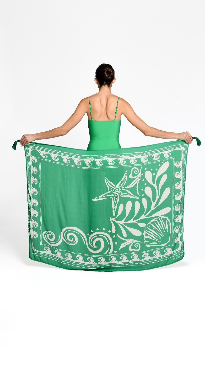 Pareo rectangular estampado con borlas, el complemento ideal que no puede faltar para acompañar tus vestidos de baños.