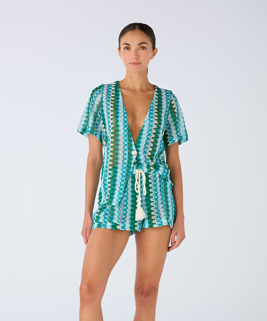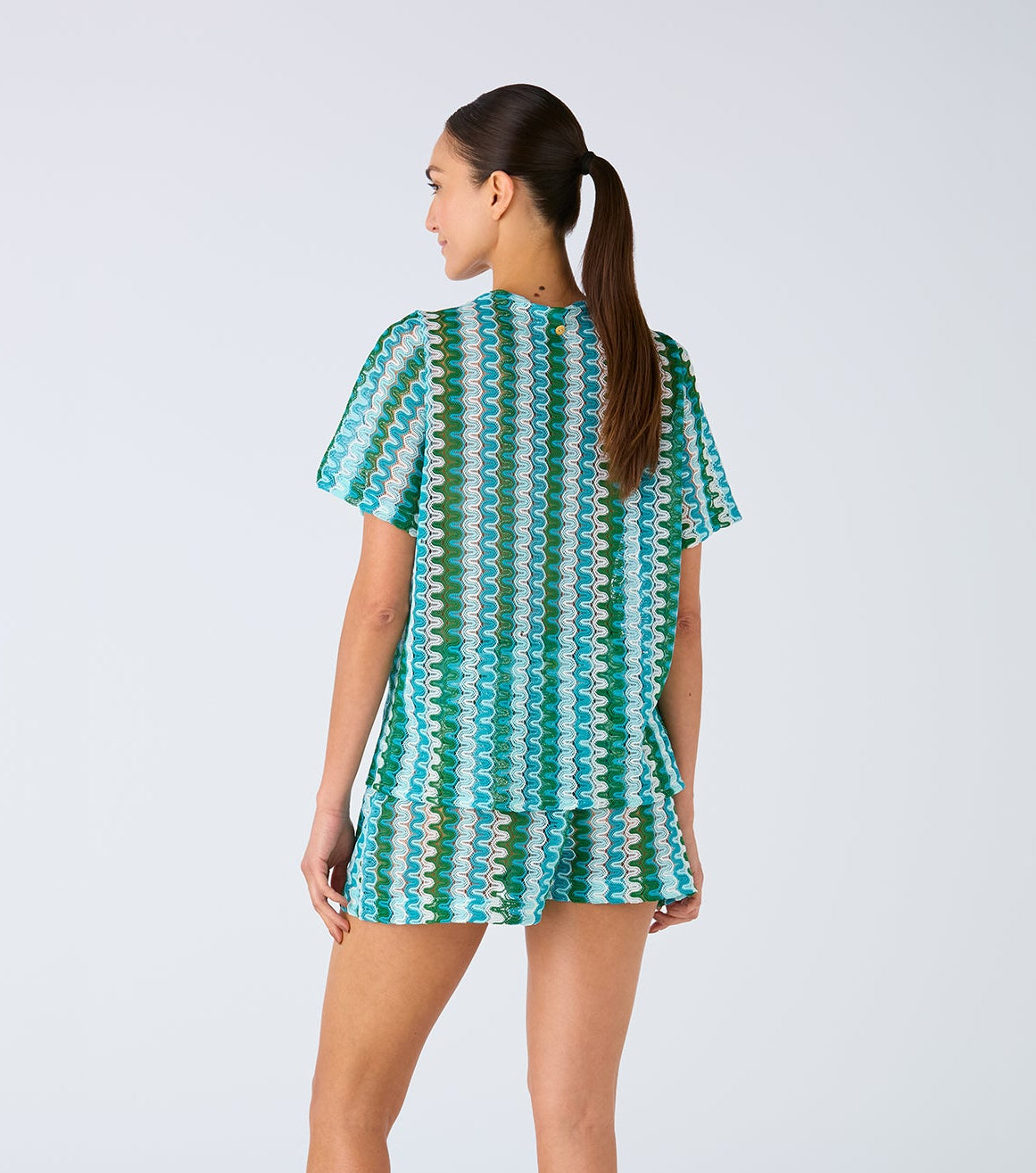 El Short Nair Aura está diseñado con una silueta relajada y cómoda. Su caída suave y cintura elástica brindan confort, mientras el hilo metálico aporta textura y dimensión al estampado geométrico.