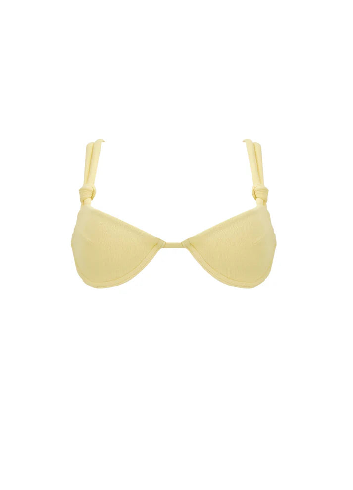 El top Fer Sun Essence combina soporte estructurado con elegancia minimalista, con copa moldeada presenta textura sutil que añade dimensión al diseño, mientras que las tiras ajustables con detalles anudados en los hombros ofrecen un fit personalizado y un toque distintivo. El cierre posterior ajustable asegura comodidad durante todo el día, y las copas preformadas brindan soporte natural sin relleno.