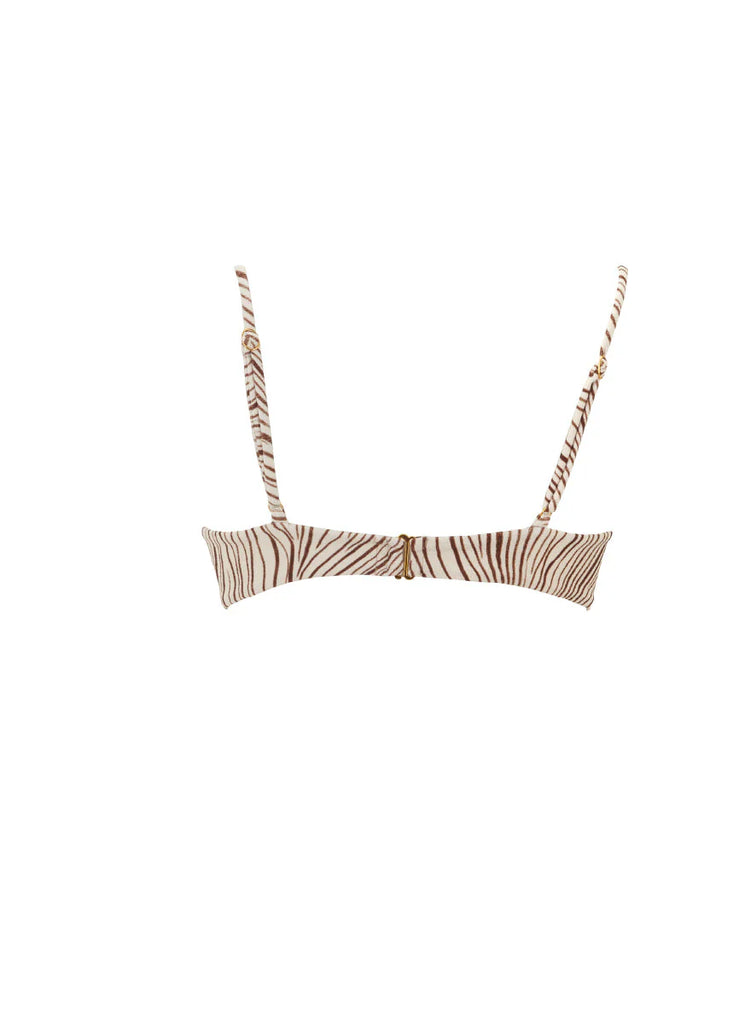 El Top Sunny de la colección Eternal Sands combina la sofisticación clásica con un soporte estructurado. Con un sutil estampado tipo vetas de madera en tonos tierra, este top con aros realza la figura con una silueta definida y un estilo atemporal.