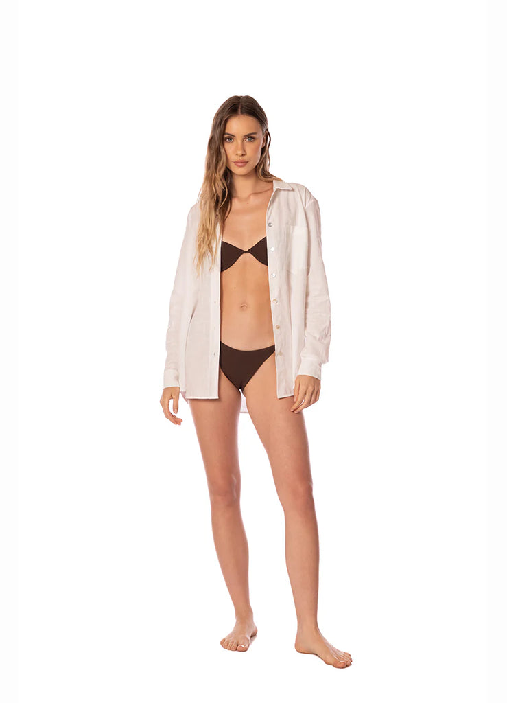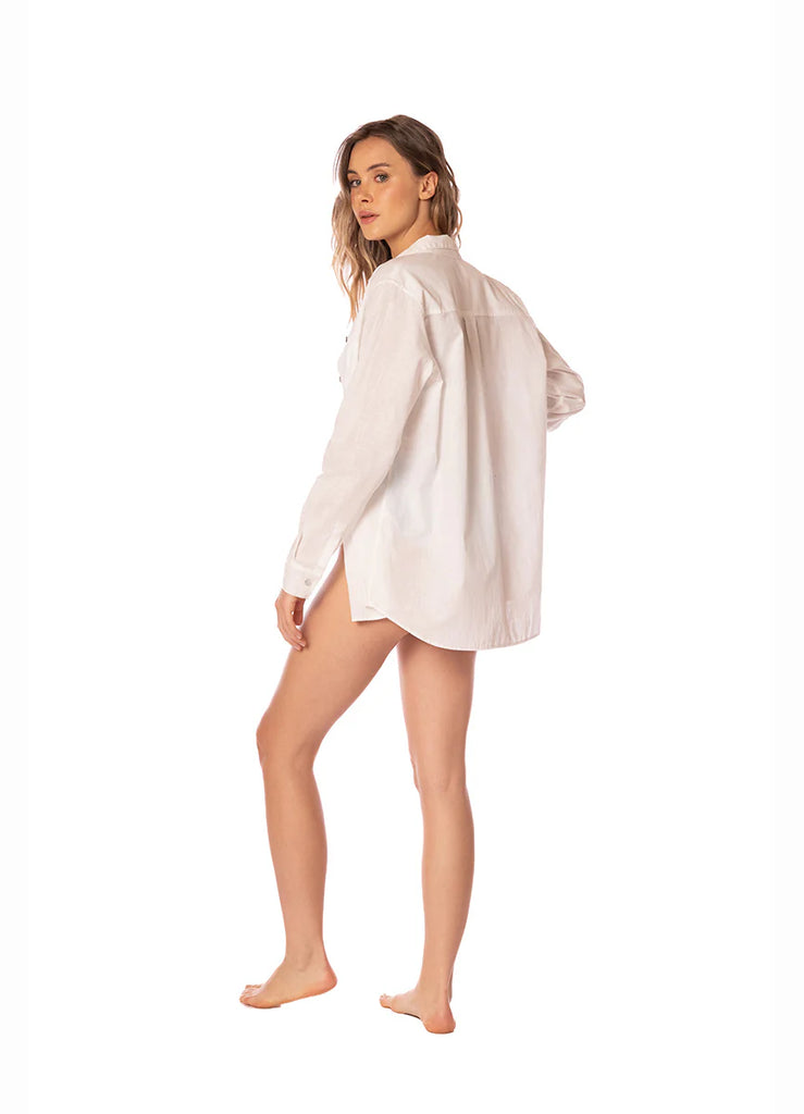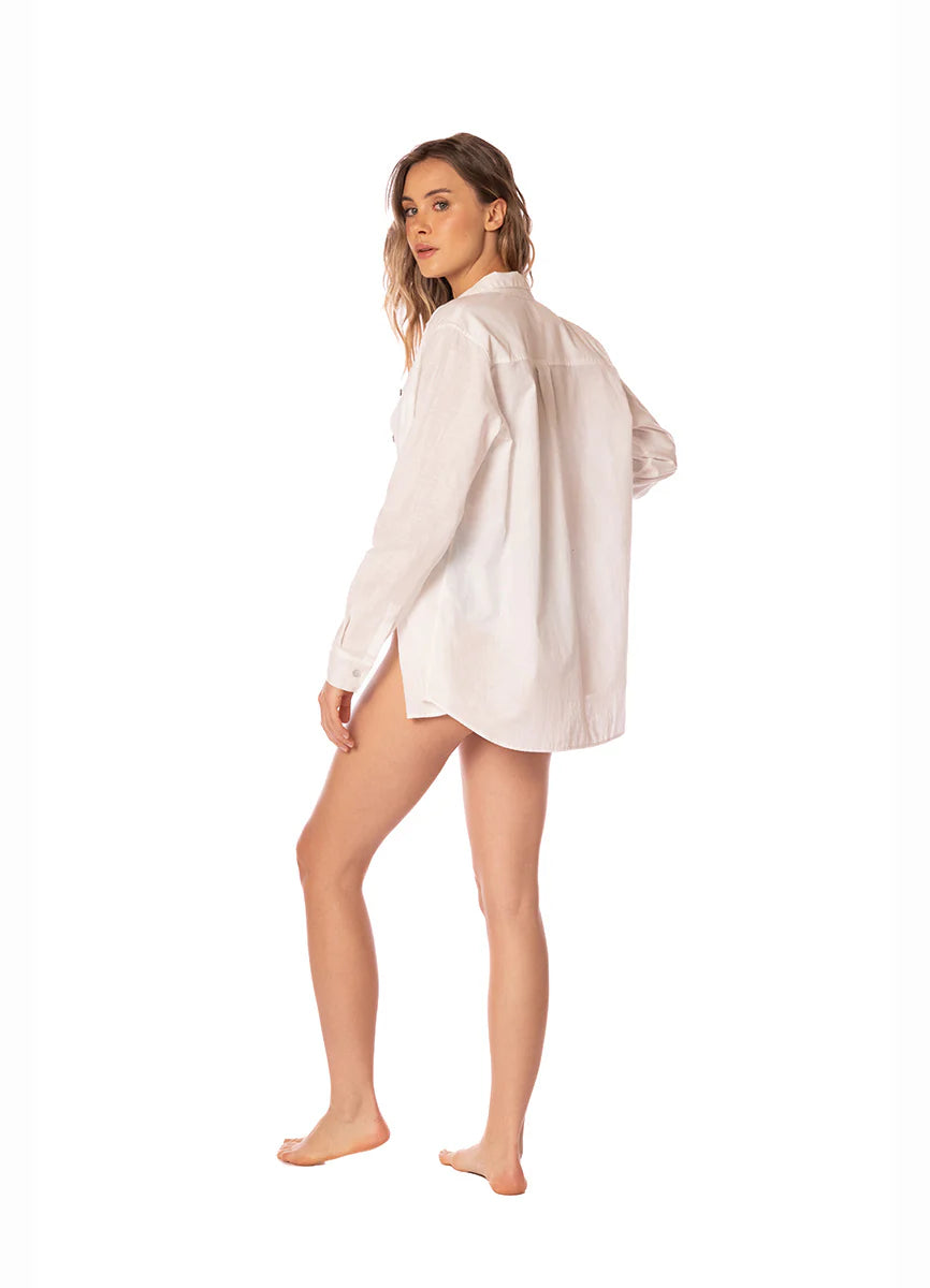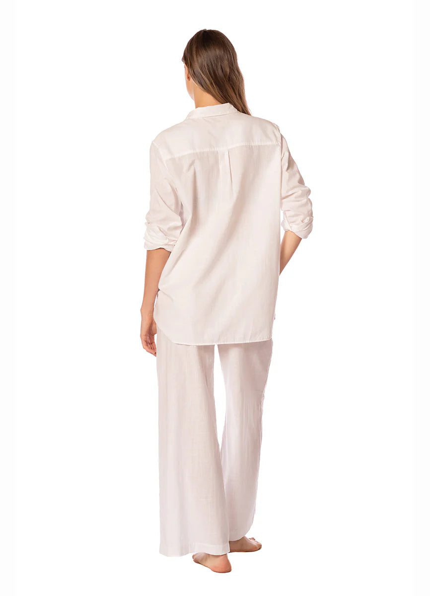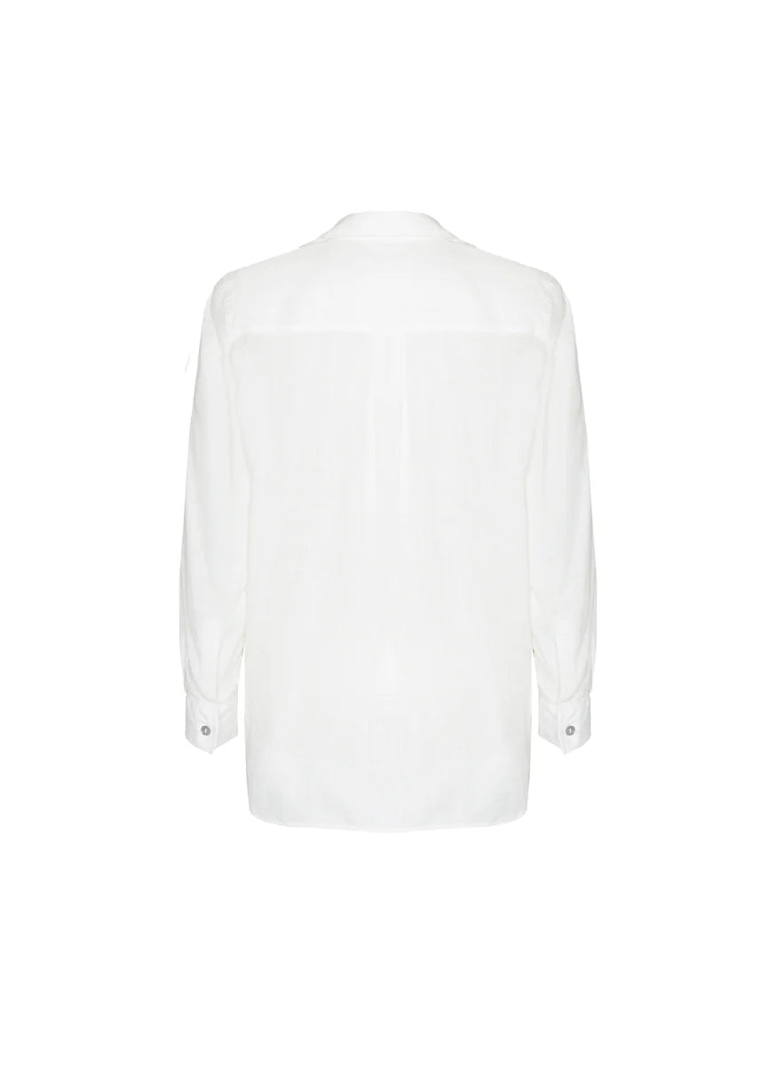 Camisa esencial de algodón con efecto lino, de manga larga y botones frontales, ideal para un estilo clásico y versátil.